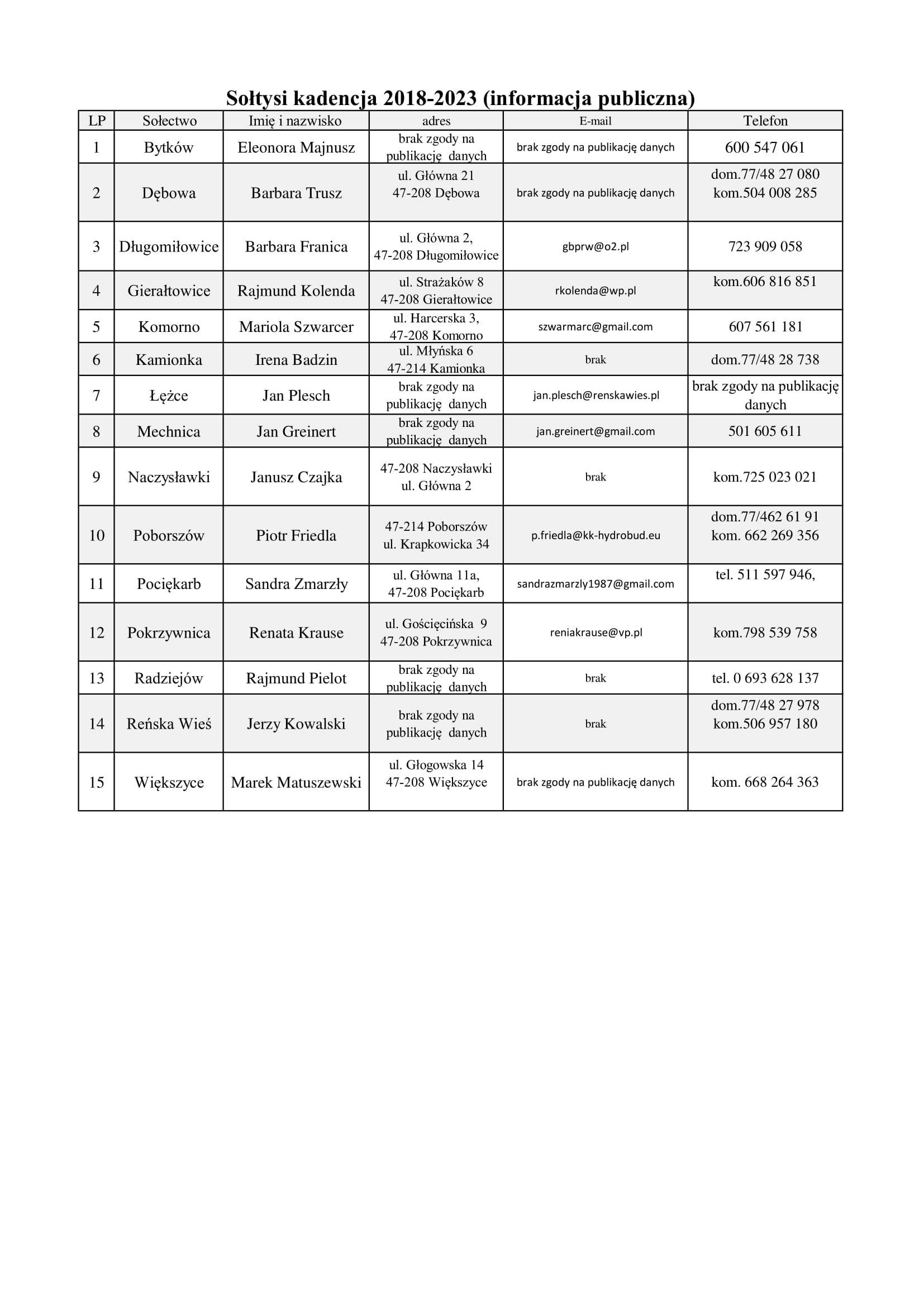- Kategoria: Zestawienie Sołtysów kadencja 2018-2023